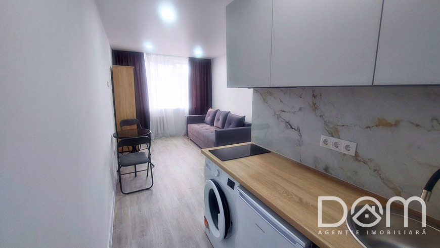Garsoniera dispune de bucătărie, bloc sanitar combinat și este echipată cu mobilă și tehnică. Starea imobilului: euro-reparație, geamuri termopan, pardoseală laminat/teracotă, ușă blindată la intrare. Toate comunicațiile sunt schimbate. Este gata de trai – te poți muta chiar azi.